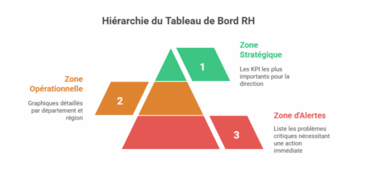 - Zone d’Alertes : Un encart listant les dérives critiques nécessitant une action immédiate (ex. : “Turnover > 25% dans le service X”).